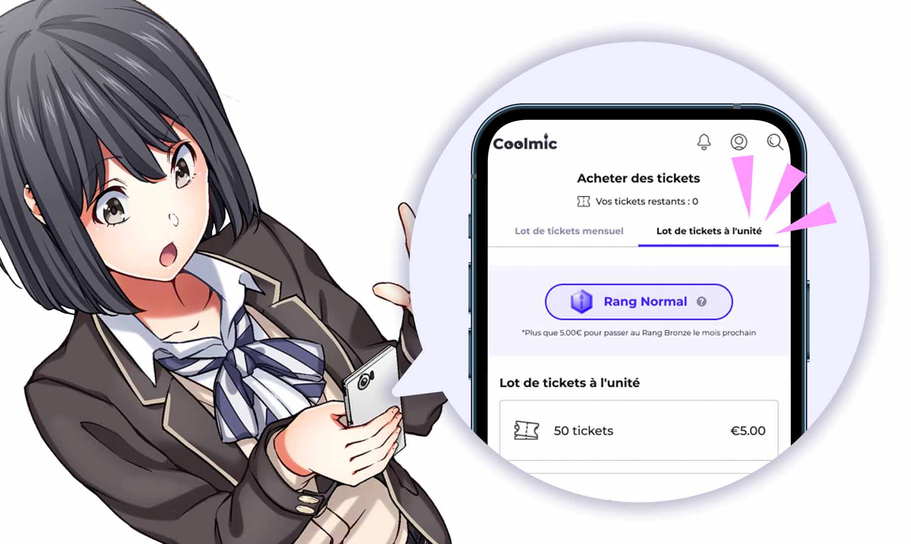 Votre souscription à un Lot de tickets mensuel est reporté sur votre Rang Coolmic, de la même que lorsque vous achetez des tickets à l'unité.